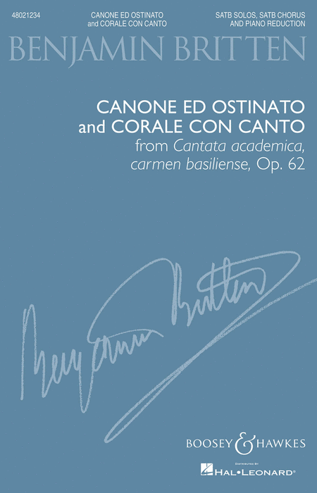 Text: in Latin compiled from the charter of the University, and from older orations in praise of Basle by Bernhard Wyss. Publisher: Boosey & Hawkes Difficulty level: 4 (for chorus) Britten's genius lifts this work above being just a worthy celebration of the 500th anniversary of the foundation of Basle University. It is tongue-in-cheek and mockingly non-academic while referring all the time to academic musical forms and formulae. It is written in two parts (everything is in the statutory Latin including the titles of the parts - Pars I and Pars II). The titles of the movements show Britten's intention to show off a wide variety of techniques. Here are some examples: Chorale/Alla Rovescio (the theme is given and responded to with the same melody upside down)/Recitativo/Tema seriale con fuga/Canone ed ostinato. There is a good deal of humour here. There are seven movements in Pars I and six in Pars II. The tenor soloist is given three florid recitatives, accompanied only by a piano, whic |