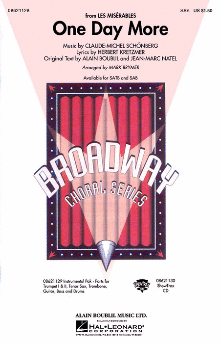 | Displaying 1-6 of 6 items. Mark Brymer : One Day More Arranger: Mark Brymer | Composer: Claude-Michel Schonberg | Lyricist: Alain Boublil | Musical: Les Miserables Mark Brymer : One Day More Arranger: Mark Brymer | Composer: Claude-Michel Schonberg | Lyricist: Alain Boublil | Musical: Les Miserables Mark Brymer : One Day More (from Les Miserables) Arranger: Mark Brymer | Composer: Claude-Michel Schonberg | Musical: Les Miserables Mark Brymer : One Day More (from Les Miserables) Arranger: Mark Brymer | Composer: Claude-Michel Schonberg | Musical: Les Miserables Mark Brymer : One Day More (from Les Miserables) Arranger: Mark Brymer | Composer: Claude-Michel Schonberg | Musical: Les Miserables |