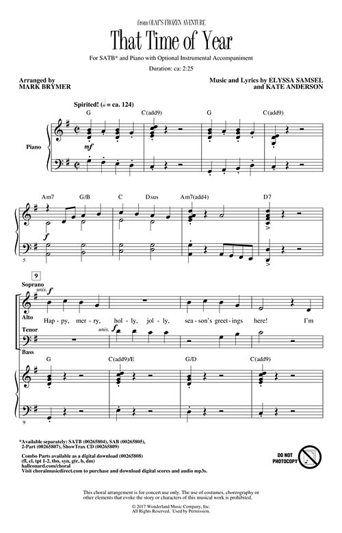 Arranger: Mark Brymer | Composer: Kate Anderson | Musical: Olaf's Frozen Adventure