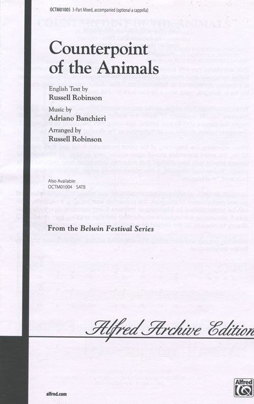 Sparkling, festive, and extremely clever original madrigal, sung in a round, with a contrasting, lilting middle section.