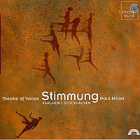 Review: With the 1968 Paris premiere of his Stimmung, Karlheinz Stockhausen (b. 1928) exploded the very definition of vocal performance. This musical tour de force, made up of an unbroken sequence of 51 sonic models - entirely built on the overtones of B-flat and presented in every possible voice combination - experiments with new compositional techniques and deconstructs the mechanics of speech and song. Paul Hillier, a champion of early and contemporary vocal repertoire, leads Theatre of Voices in his newly created "Copenhagen version" of a milestone of 20th-century music that today remains as relevant as ever. Hillier's life-long relationship with Stimmung began in the 1970s when he performed it as a member of Singcircle with the composer at the controls. The serene but highly charged aural landscape of the work has its roots in Stockhausen's assimilation of global musical currents as he traveled the world in the 1950s and 1960s - from mystic experiences in Mexico to Tibetan overtone singing. Surprisingly, this is one of Stockhausen's most accessible compositions: spiritual yet humorous, mystical yet worldly and erotic in its poetry. Following the performances Theatre of Voices gave in the UK, the Times of London called them "mesmerizing" and The Daily Telegraph described the event as "evoking a feeling of ritual and tranquility." This SACD-only release is a demonstration-quality recording that is certain to wow the most exacting of audiophiles.