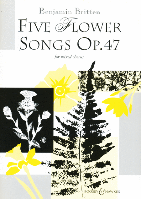 Benjamin Britten : Christ's Nativity A perfect example of the young Britten's masterful vocal writing in a Christmas choral suite destined to become a major repertoire work. Songlist: Christ's Nativity, Sweet was the Song, Preparations, New Price, New Pomp and Carol of King Cnut. Benjamin Britten : Five Flower Songs Both beautiful and inspiring words and music with these delightful songs. Songlist: To Daffodils, The Succession of the Four Sweet Months, Marsh Flowers, The Evening Primrose, Ballad of Green Broom Benjamin Britten : Choral Dances from Gloriana At the opening of Act 2 of Gloriana, Queen Elizabeth 1 is on a state visit to Norwich. After a formal address of welcome she is entertained by a Masque. To these unaccompanied Choral Dances, dancers representing Time and Concord, country girls and young rustics and fishermen all pay homage and tribute to the Queen Songlist: Time, Concord, Time and Concord, Country Girls, Rustics and Fishermen, Final Dance of Homage Benjamin Britten : A Ceremony of Carols - SSA Written for SSA voices and harp (or piano), this popular Christmas choral collection is perfect for your holiday concert. Songlist: Procession, Wolcom Yole, There Is No Rose, The Yonge Child, Balulalow, As Dew In Aprille, This Little Babe, Interlude, In Freezing Winter Night, Spring Carol, Deo Gracias, Recession, Spring Carol Benjamin Britten : A Ceremony of Carols Written for SATB voices and harp (or piano), this popular christmas choral collection is perfect for your holiday concert. Songlist: Procession, Wolcom, Yole, There Is No Rose, The Yonge Child, Balulaow, As Dew In Aprille, This Little Babe, Interlude, In Freezing Winter Night, Spring Carol, Deo Grcias, Recession, Spring Carol Benjamin Britten : Opera Arias - Book 1 - Soprano Contents: Embroidery Aria (from Peter Grimes) - Glitter of Waves (from Peter Grimes) - I'm Full of Happiness (from Albert Herring) - Is This All (from Albert Herring) - Let Her Among You (from Peter Grimes) - Now Then! Notebook! (from Albert Herring) - She Sleeps As a Rose (from Rape of Lucretia) - Time Treads Upon Hands (from Rape of Lucretia) - Tis Safe For Kings (from Gloriana). Songlist: LET HER AMONG YOU WITHOUT FAULT, EMBROIDERY ARIA, GLITTER OF WAVES AND GLITTER OF SUNLIGHT, NOW THEN! NOTEBOOK, FLORENCE!, IS THIS ALL YOU CAN BRING?, I'M FULL OF HAPPINESS, SOLILOQUY AND PRAYER, SHE SLEEP AS A ROSE, TIME TREADS UPON THE HANDS OF WOMEN Benjamin Britten : Opera Arias - Book 2 - Soprano Contents: Run, Poor Sweep Boy! (from The Little Sheep) - Soon the Coach Will Carry You Away (from The Little Sweep) - The Journey - Nearly There (from The Turn of the Screw) - Lost in My Labyrinth (from The Turn of the Screw) - Go to Sleep, My Dolly Dear (from The Turn of the Screw) - Come, Now a Roundel (from A Midsummer Night's Dream) - Be Kind and Courteous (from A Midsummer Night's Dream) - Injurious Hermia (from A Midsummer Night's Dream). Songlist: RUN, POOR SWEEP BOY!, SOON THE COACH WILL CARRY YOU AWAY, JOURNEY, THE - NEARLY THERE, TOWER, THE - HOW BEAUTIFUL IT IS, LOST IN MY LABYRINTH, GO TO SLEEP, MY DOLLY DEAR, COME, NOW A ROUNDEL, BE KIND AND COURTEOUS, INJURIOUS HERMIA Benjamin Britten : The Poet's Echo Titles: Echo * My Heart * Angel * The Nightingale and the Rose * Epigram * Lines written during a sleepless night Songlist: Echo, My Heart, Angel, The Nightingale and the Rose, Epigram, Lines written during a sleepless night Benjamin Britten : Birthday Hansel, Opus 92 These songs were written at the special wish of Her Majesty the Queen for her mother's seventy-fifth birthday, August 4th 1975. Its first public performance was given on the 9th January 1976, at Schloss Elmau in Germany by Osian Ellis and Peter Pears. The collection of pieces are intended for High Voice and Harp. The poems for which the music was written for are by Robert Burns. Benjamin Britten : Four Burns Songs, Opus 92 These four songs are taken from A Birthday Hansel Op.92 which was written at the special wish of Her Majesty The Queen for her mother's seventy-fifth birthday, 4th August 1975. All of the songs are wonderfully flowing and expressive and are arranged for High Voice with piano accompaniment. Titles: Afton Water * Wee Willie * The Winter * My Hoggie Benjamin Britten : Eight Folk Songs - High Voice Titles: Lord, I married me a wife * She's like the Swallow * Lemady * Bonny at morn * I was lonely and forlorn * David of the White Rock * The False Knight * Bird Scarer's Song Benjamin Britten : Eight Folk Songs - Medium Voice Titles: Lord, I married me a wife * She's like the Swallow * Lemady * Bonny at morn * I was lonely and forlorn * David of the White Rock * The False Knight * Bird Scarer's Song Benjamin Britten : Cabaret Songs These four fantastic cabaret songs are splendid examples of the genre. They not only provide ample evidence of the composer's and poet's wit and high spirits, but are also wholly characteristic of a particular kind of vernacular music that resulted from the collaboration of two brilliantly endowed young men in the thirties. Arranged for Piano and voice. Titles: Tell me the truth about Love * Funeral Blues * Johnny * Calypso Benjamin Britten : The Red Cockatoo & Other Songs - High Voice A terrific collection that brings together nine of Britten's previously unpublished songs, written over a period of 25 years from 1935 onwards. Many were originally intended to be part of song-cyles but were cut during the final revisions. This edition includes a helpful introduction and information regarding each song. Titles: A Poison Tree * Birthday Song For Erwin * Cradle Song * If Thou Wilt Ease Thine Heart * Not Even Summer Yet * The Red Cockatoo * When You're Feeling Like Expressing Your Affection * Wild With Passion Benjamin Britten : The Red Cockatoo & Other Songs - Low Voice A terrific collection that brings together nine of Britten's previously unpublished songs, written over a period of 25 years from 1935 onwards. Many were originally intended to be part of