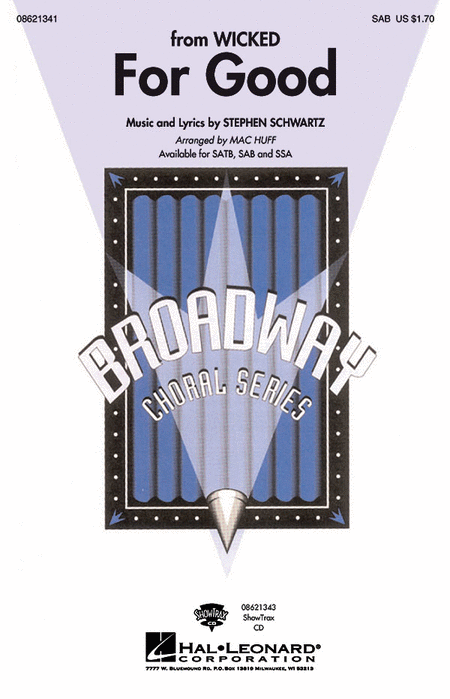 From the Broadway smash hit Wicked, this stirring ballad reminds us of the positive influence we can have on others. ... I have been changed for good.Available separately: SATB, SAB and SSA. ShowTrax CD also available. Performance time: Approx. 4:30. |