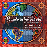Review: Conductor Rene Clausen is very well known to us for the work he has done with Moorhead MN's Concordia Choir, as Artistic Director of the Emmy-winning Concordia Christmas Concerts, and for over 100 of his own compositions for choirs at all levels. "Beauty in the World" features 13 songs, from the powerful Swahili folk tune "Wana Baraka," Ysaye M. Barnwell's lovely, haunting "Wanting Memories" the powerful Folk song "Dulaman" and the accompanied Irish Folk song "The Little Beggarman" to the accompanied, Clausen-arranged Civil War camp song "Tenting on the Old Campground," the powerful percussion-accompanied Kitana Folk song "Noel," Herbert Mahelona's lovely "No Ka Beauty O Hohokohau," Juris Karlsons' "Rotala" and the F. Melius Christiansen-arranged "Praise to the Lord," each of these songs is a choral masterwork, a vocal symphony if you will. The Choir has deep, powerful harmonies, soaring leads and tremendous feeling and spirit. Don't miss this collection!