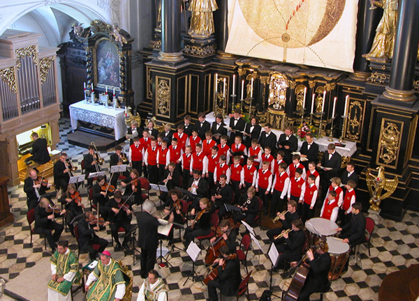 When they have gained in musical maturity and vocal ability, the boys are invited to join the concert choir. The choir is a specialist section in the Tyrolean State Conservatory. At the moment the concert choir comprises approx. 90 boys and young male voices. Even after their voices break, the boys are able to remain in the choir and continue to be voice-trained by highly-qualified singing tutors. The Wilten Boys' Choir does not have its own boarding school - the children go to various schools in the greater Innsbruck area and attend choir practices twice a week and once for voice training (individually or in small groups).