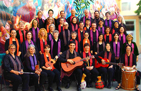 The La Pena Community Chorus has been singing songs of peace, justice, and hope since it began in 1978. Started by the Chilean exile community who founded La Pena Cultural Center in Berkeley in 1975, the original mission of the Chorus was one of solidarity with the resistance against the dictatorship in Chile. But over the years our focus has expanded to other countries, including the struggles of people in El Salvador, Nicaragua, Mexico, Cuba, and to various labor, community, and women's struggles closer to home. Our music includes not only the Nueva Cancion (or "New Song Movement") of Chile, but styles based in the folk and social justice movements of all of Latin America. We sing in nursing homes, elders' residences, hospitals, migrant labor camps, juvenile halls, rehabilitation centers, and schools, in addition to our public concerts and performances.