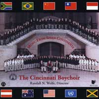 Cincinnati Boychoir : America Sings Founded in 1965, the Cincinnati Boychoir presents its own concert series and performs 40 times a year for symphonies, television, community organizations, churches, weddings, clubs and retirement homes. "America Sings" features 18 songs, some accompanied by piano, flute and organ. Our favorites are the spirituals "Great Day!," "Run to Jesus," "Deep River" and "I Hear a Voice Callin' for Me," "Variations on America" and "I Hear America Singing." Others are Irving Berlin's "God Bless America," "Battle Hymn of the Republic" and Sousa's "Stars and Stripes Forever." James Dana's "My Tent Beside the Oregon," "When Can I Read My Title Clear" and the American folk tune "My Shepherd Will Supply My Need" are also very fine. Another stellar collection by one of our favorite boychoirs! Songlist: Great Day, How Can I Keep From Singing, E Hii Lei E, Amazing Grace, Run To Jesus, Holy Manna, Come Thou Fount, When I Can Read My Title Clear, Star Trek Next Generation Theme, Deep River, My Shepard Will Supply My Need, My Tent Beside The Oregon, I Hear A Voice A-Callin', Variations On America, God Bless America, I Hear America Singing, Battle Hymn Of The Republic, Stars and Stripes Forever Cincinnati Boychoir : Gift Vol 2 Founded in 1965, the Cincinnati Boychoir is divided into three groups; the Training Choir, Resident Choir, and the elite Touring Choir. Their Christmas CD, "Gift," is exactly that! Beginning with Josef Rheinburger's "Messe in A, Op. 125 and Benjamin Britten's 12-part "Ceremony of Carols," we proceed to 5 Christmas Carols, including "Joy to the World," the Sicilian hymn "O Sanctissima," and "Hark the Herald Angels Sing." Then we have 4 "Holiday Songs with the Resident Choir," "Riu, Riu, Chiu," "Children's Song of the Nativity," "Nino Querido" and "Ding, Dong, Merrily on High; followed by 6 "Holiday Favorites," which include the German tune "Kling, Clockchen," "The Little Drummer Boy," "Toyland" and "We Wish You a Merry Christmas." All songs are accompanied by piano, harp and other instruments. As Christmas is about one special child, we particularly love beautiful Christmas music sung by a fine, well-directed children's choir like the Cincinnati Boychoir - it's a Gift! Songlist: Messe in A, Op. 125, Gloria, A Ceremony of Carols, Processional, Wolcum, Yule!, There Is No Rose, That Yonge Child, Balulalow, As Dew in Aprille, The Little Babe, Interlude, Spring Carol, Deo Gracias, Recessional, Christmas Carols:, Joy the the World, O Sanctissima, Hark, the Herald Angels Sing, O come, All Ye Faithful, Silent Night, Holiday Songs with the Resident Choir, Riu, Riu, Chiu, Children's Song of the Nativity, Nino Querido, Ding, Dong, Merrily On High, Holiday Favorites, Kling, Glockchen, The Little Drummer Boy, Toyland, We Need a Little Christmas, and more Cincinnati Boychoir : Music From Seven Continents Vol 1 Randall Wolfe directs the popular Cincinnati (Ohio) Boychoir, who recently had two members accepted to tour Japan and the US with the prestigious Vienna Boys Choir's Haydnchor. "Seven Continents" is a lively collection of tunes from Africa (the African folksong "Siyahamba"), South America ("Tinga Layo," West Indies folksong), Asia ("A Crying Bird," Taiwanese folksong), Europe (Johann Strauss, Jr.'s "Tritsch Tratsch Polka"), Australia (the well-known folksong "Kookaburra"), and North America (Mary Earl's "Beautiful Ohio" and "When My Baby Smiles at Me"). 14 songs in all, all lightly piano accompanied. A fun, spirited collection from the Cincinnati Boychoir! Songlist: Antarctica:, Antarctica, Africa:, Siyahamba, South America:, Tinga Layo, Voce Gosta, Asia:, Study Is Good, A Crying Bird, The Toke, Suliram, Europe:, Tritsch Tratsch Polka, Australia:, Kookaburra, North America, Song of Ohio, Beautiful Ohio, When My Baby Smiles at Me, Is Everybody Happy Now? Cincinnati Boychoir : Music From Seven Continents Vol 2 This is part 2 of a well-selected, sweetly-performed collection of 18 tunes from all over the world by the well-traveled and beloved Boychoir, who have toured throughout the US and in Austria, Germany, the Czech Republic and Canada. Some favorites are, the Zulu song "Mangwani Mpulele," from Africa, "Haera Ra" from Australia, "Eu e Voce" from Brazil, John Sanders' "A Canticle of Joy" from Europe, Carlton Young's "Penguins" from Antarctica, "Hitori" from Japan, and from North America, Libby Larsen's "Ring the Bells" and Queen Lili'uokalani's "Nani Na Pua Ko'olau." Light piano accompaniment on all songs. A well-selected and nicely-sung program by the pride of Cincinnati! Songlist: Mangwani Mpulele, Haera Ra, South America:, Eu e Voce, Escondido, Europe:, Gloria, A Canticle of Joy, Antarctica:, Antarctica, Penguins, Exploring, Memories, North America:, Ring the Bells, O praise Him, Aloha 'Oe, Nani na Pua Ko'olau, America, The Beautiful |