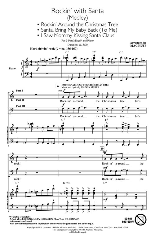 This medley of classic Christmas songs is a holiday confection! Incorporating three different styles of rock 'n' roll, this medley includes Rockin' Around the Christmas Tree, Santa, Bring My Baby Back (to Me) and I Saw Mommy Kissing Santa Claus.